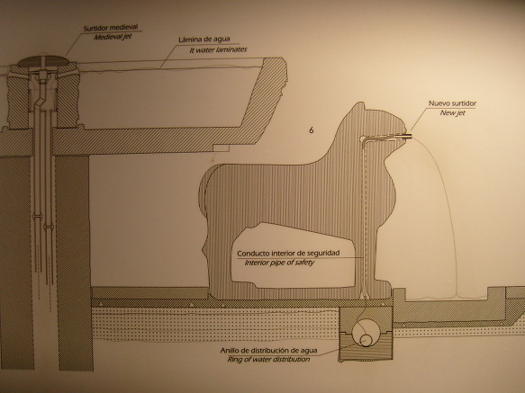 궁전을 복원함에 있어서도 안정된 수량을 확보하여 옛날 무어인들의 방식으로 분수와 물의 흐름을 재현하는 데 역점을 두고 있었다. 그러나 중앙 정원에 있는 돌사자 입에서 분수가 나오게 하는 것은 현대 기술로도 복원이 쉽지 않은 듯이 보였다.