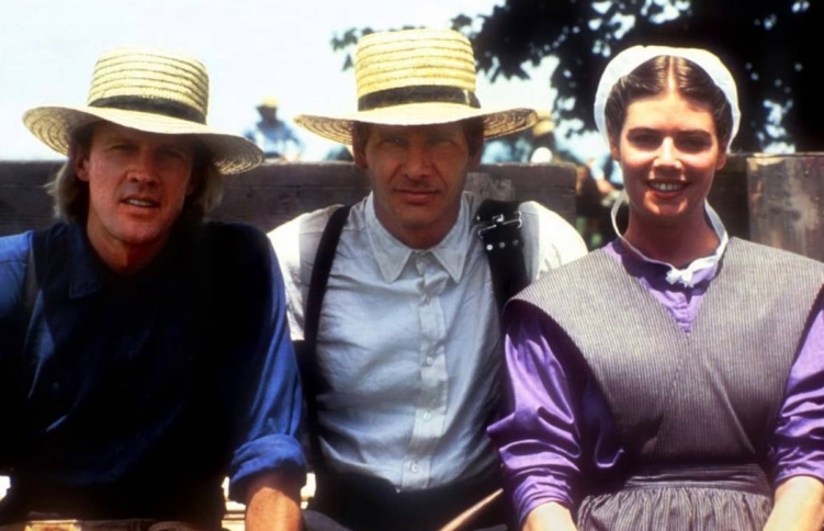 애미쉬 교도들은 화려한 장식이나 오락, 흥겨운 음악조차도 터부시한다. 마약거래를 하는 동료 경찰에 쫒겨 애미쉬 마을로 들어간 해리슨 포드가 총상이 회복된 후 창고 안에서 자동차를 수리하는데 켈리 맥길리스가 들어와 '이 멋진 세상'(What a wonderful world!)이라는 노래에 맞춰 함께 춤을 춘다. 이를 보고 대경실색하는 할아버지의 모습이 재미있다.