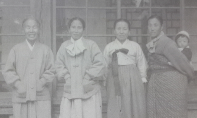 위 사진 역시 네 분 동서가 1959년 말 운봉 큰집에서 열린 집안행사에 모였다. 왼편부터 첫째, 들째, 셋째 백모님과 넷째 어머니(등에 박경희가 업혀 있다)